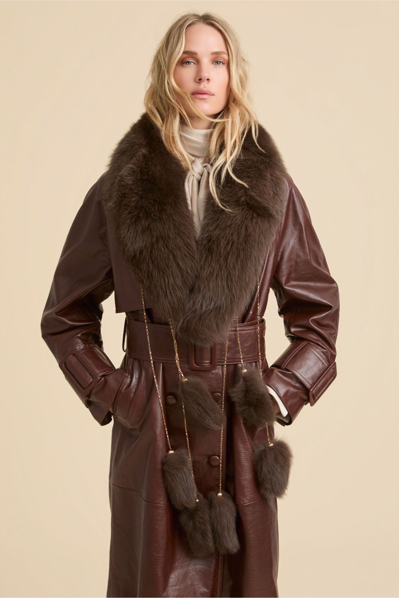 Nuestro cuello Dakota es un complemento de lo más especial. Confeccionado en piel de zorro de alta calidad, lleva seis pompones desmontables engastados en cadenas doradas dándoles un toques de lujo y originalidad.Combínalo con nuestras trench para elevar tu look.