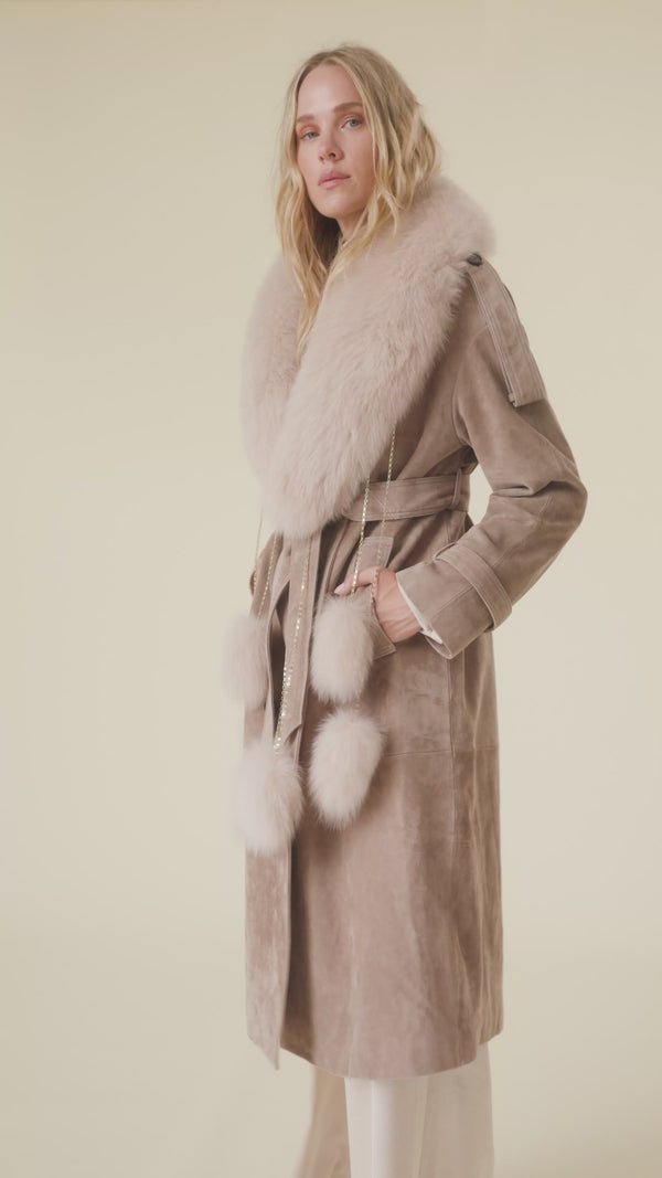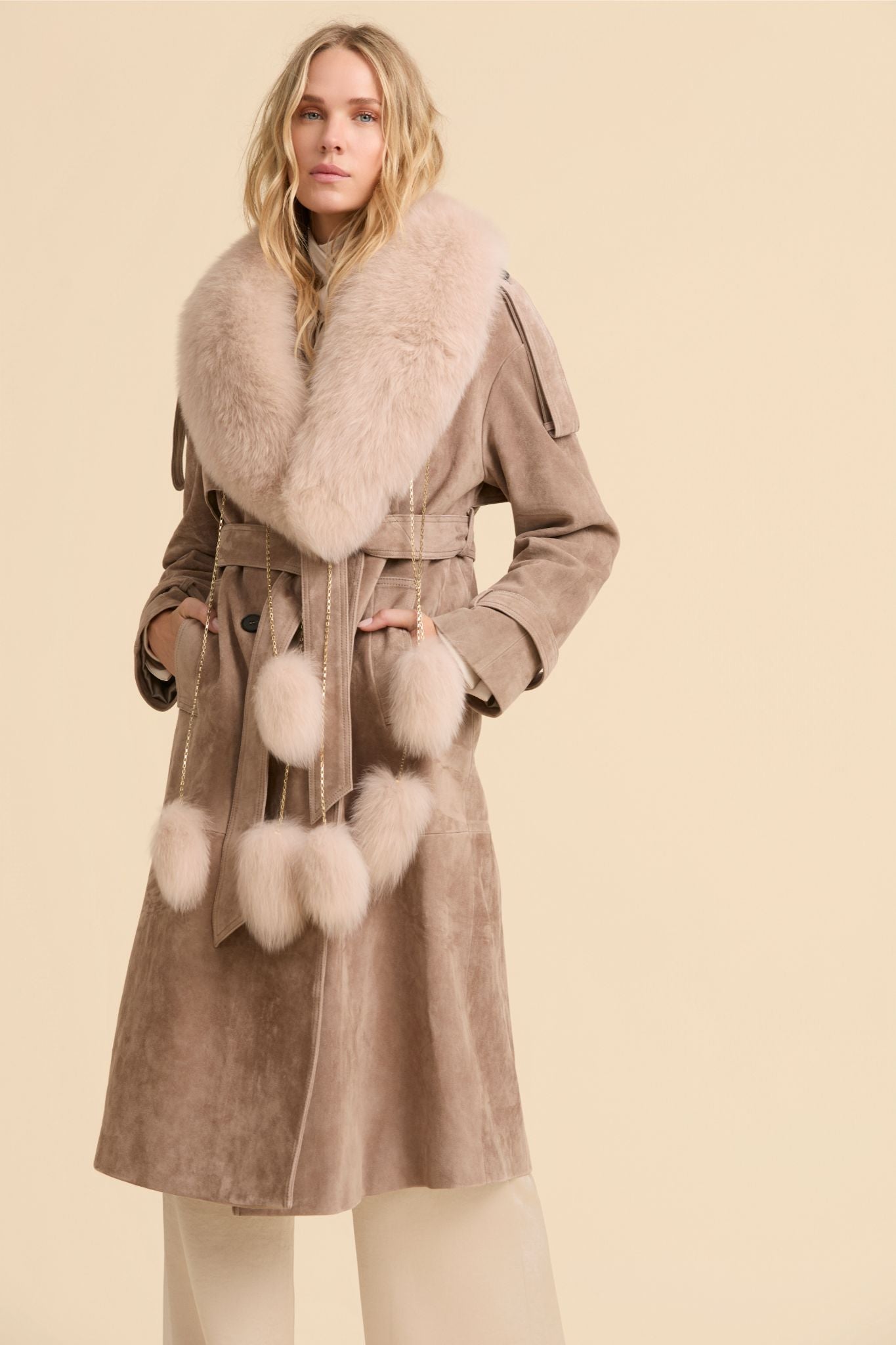 Nuestro cuello Dakota es un complemento de lo más especial. Confeccionado en piel de zorro de alta calidad, lleva seis pompones desmontables engastados en cadenas doradas dándoles un toques de lujo y originalidad.Combínalo con nuestras trench para elevar tu look.