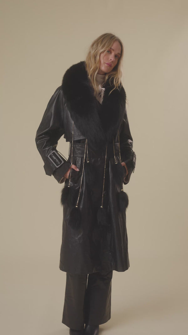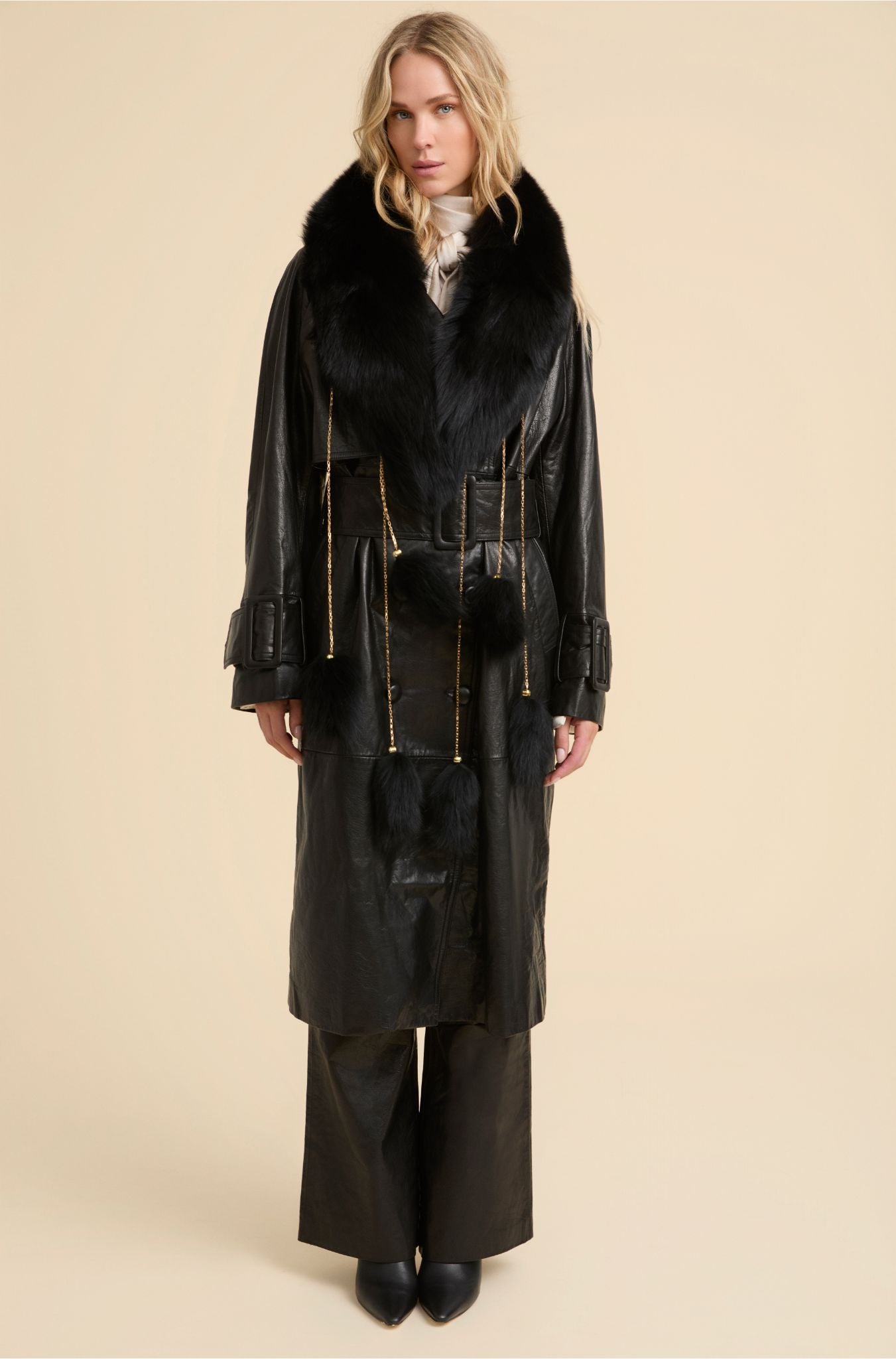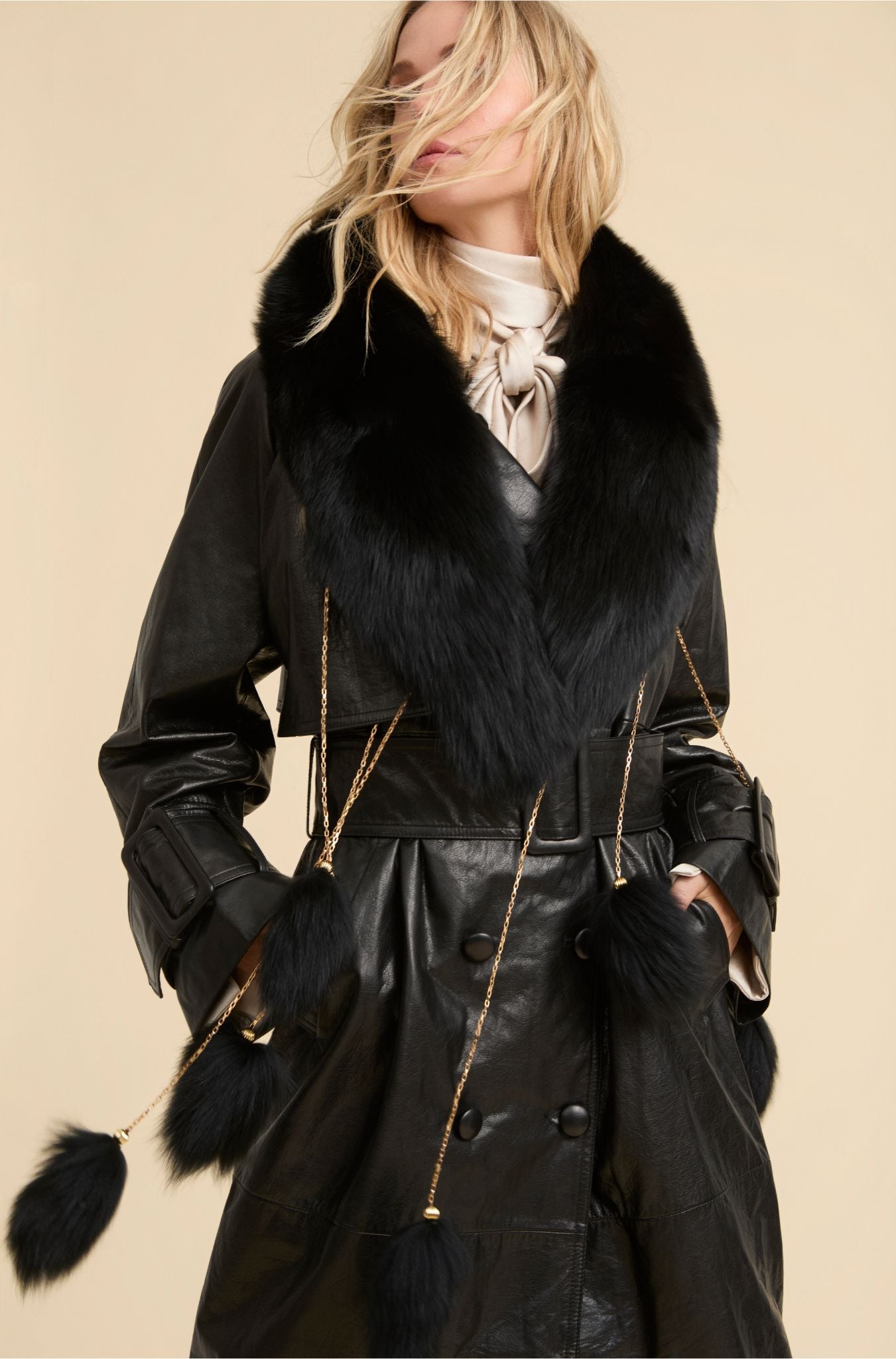Nuestro cuello Dakota es un complemento de lo más especial. Confeccionado en piel de zorro de alta calidad, lleva seis pompones desmontables engastados en cadenas doradas dándoles un toques de lujo y originalidad.Combínalo con nuestras trench para elevar tu look.