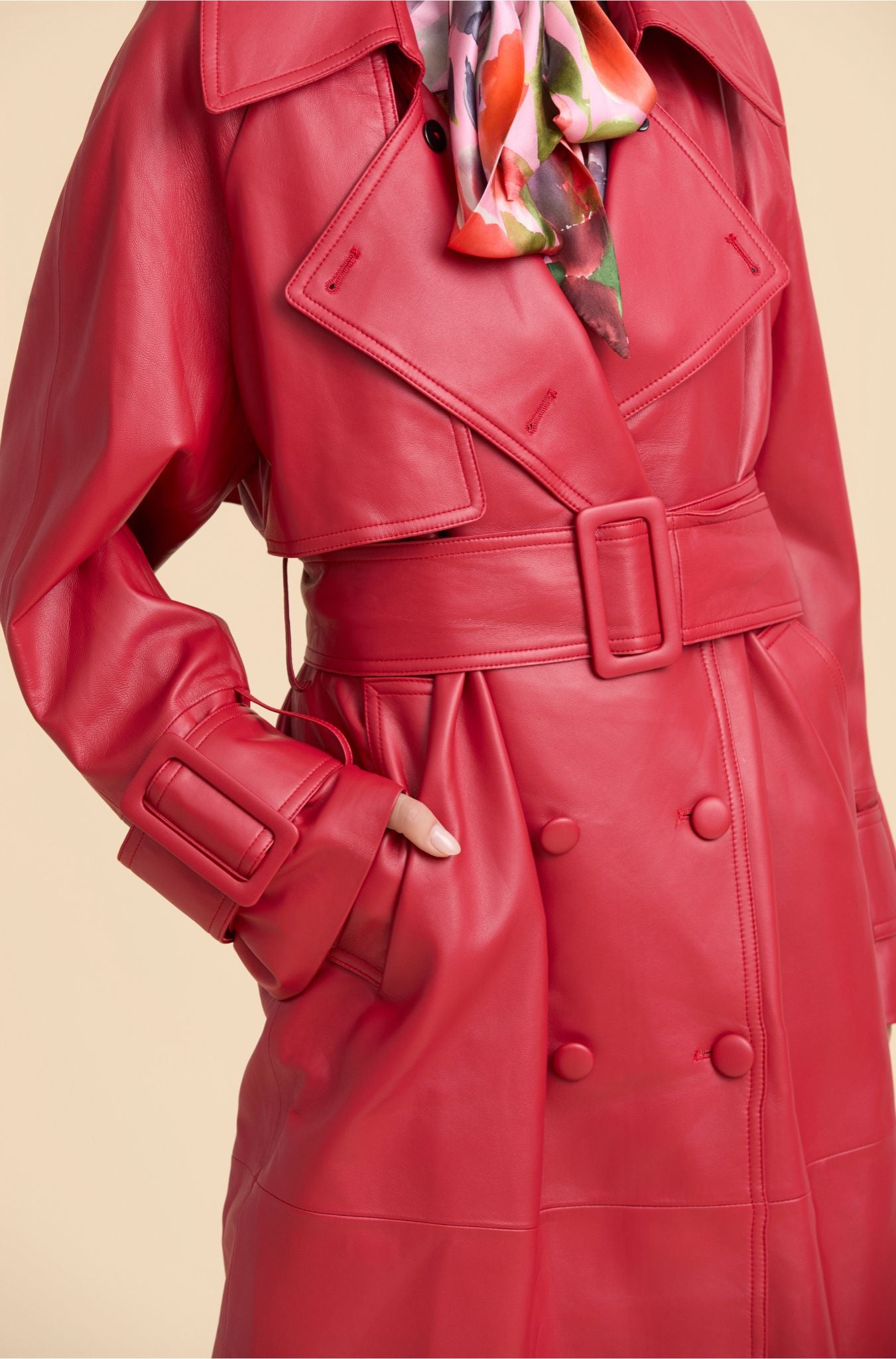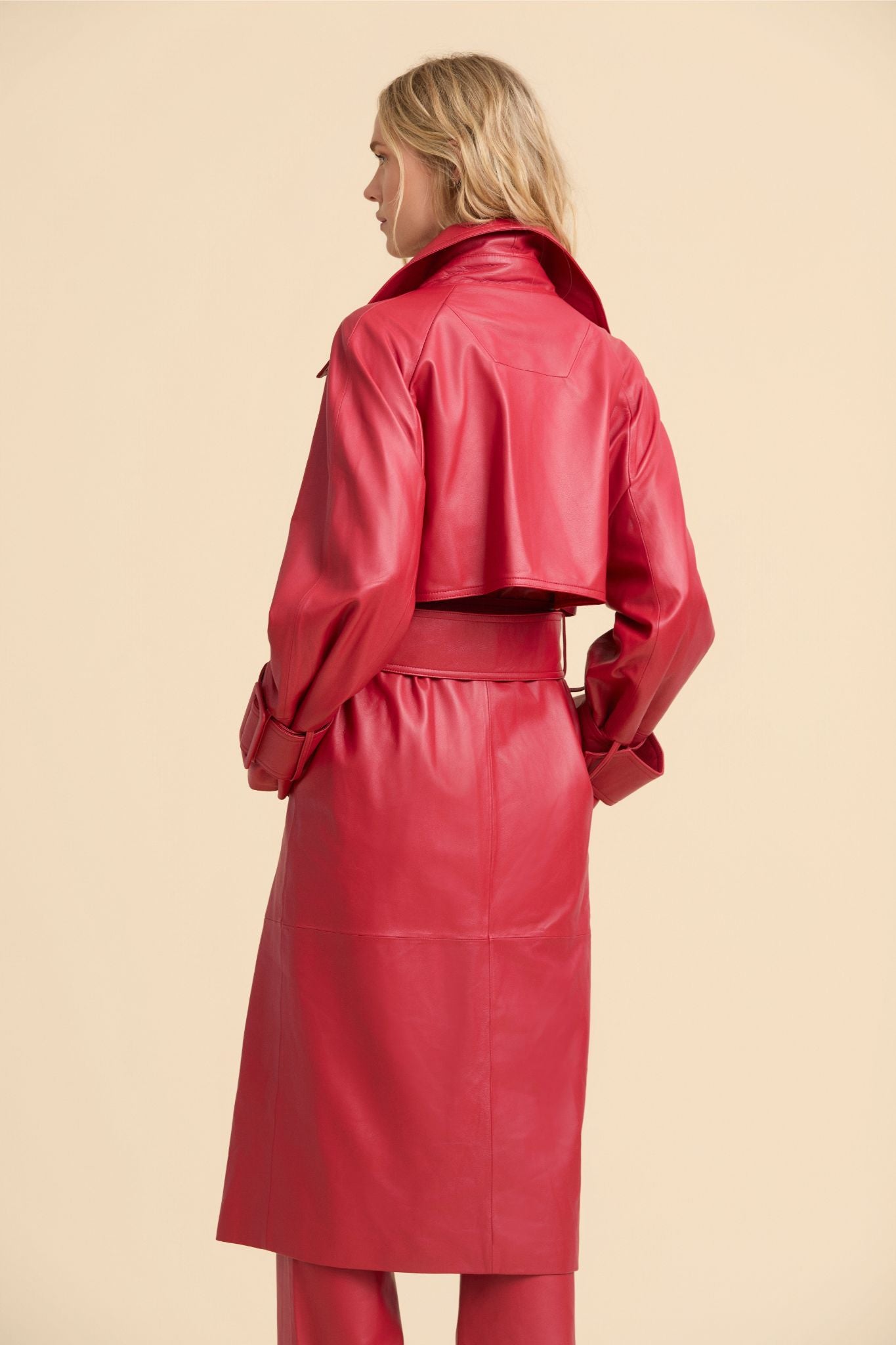 Nuestra gabardina Hailey de doble abotonadura, es una prenda de inspiración vintage confeccionada en piel de alta calidad. Se caracteriza por su cuello de anchas solapas, puños con maxi trabillas y silueta esculpida y alargada. Un clásico atemporal, de suaves líneas y infinitamente versátil.