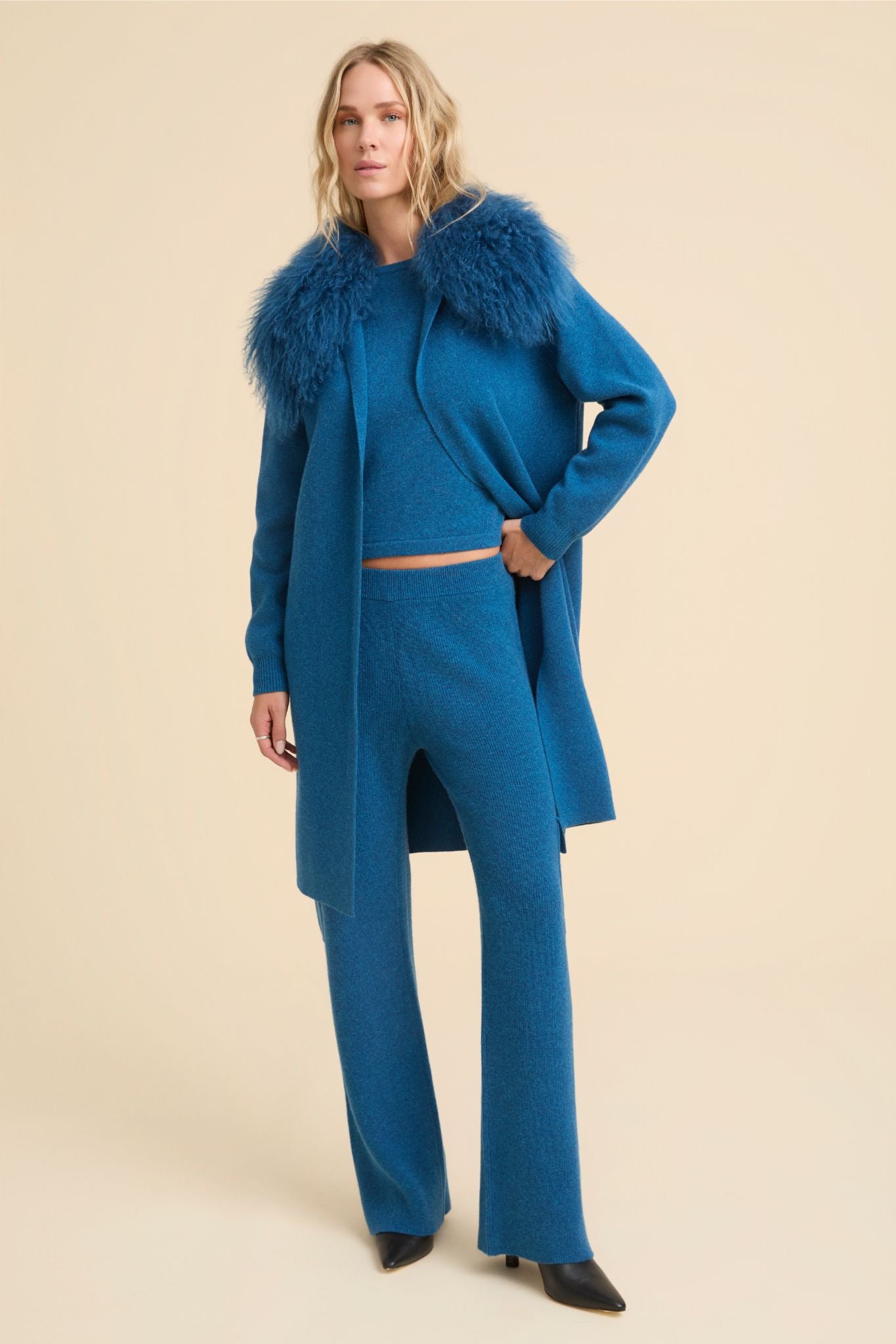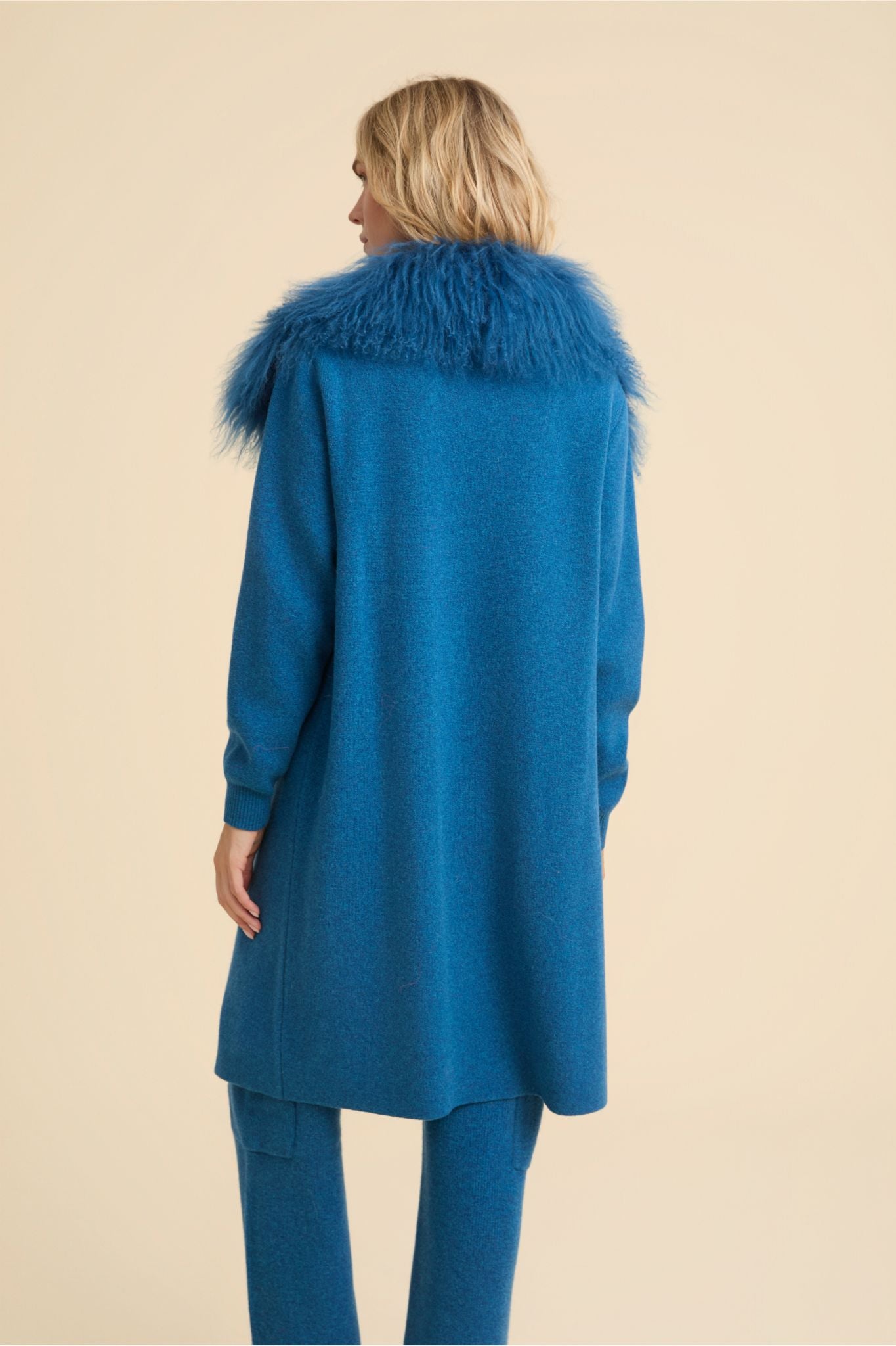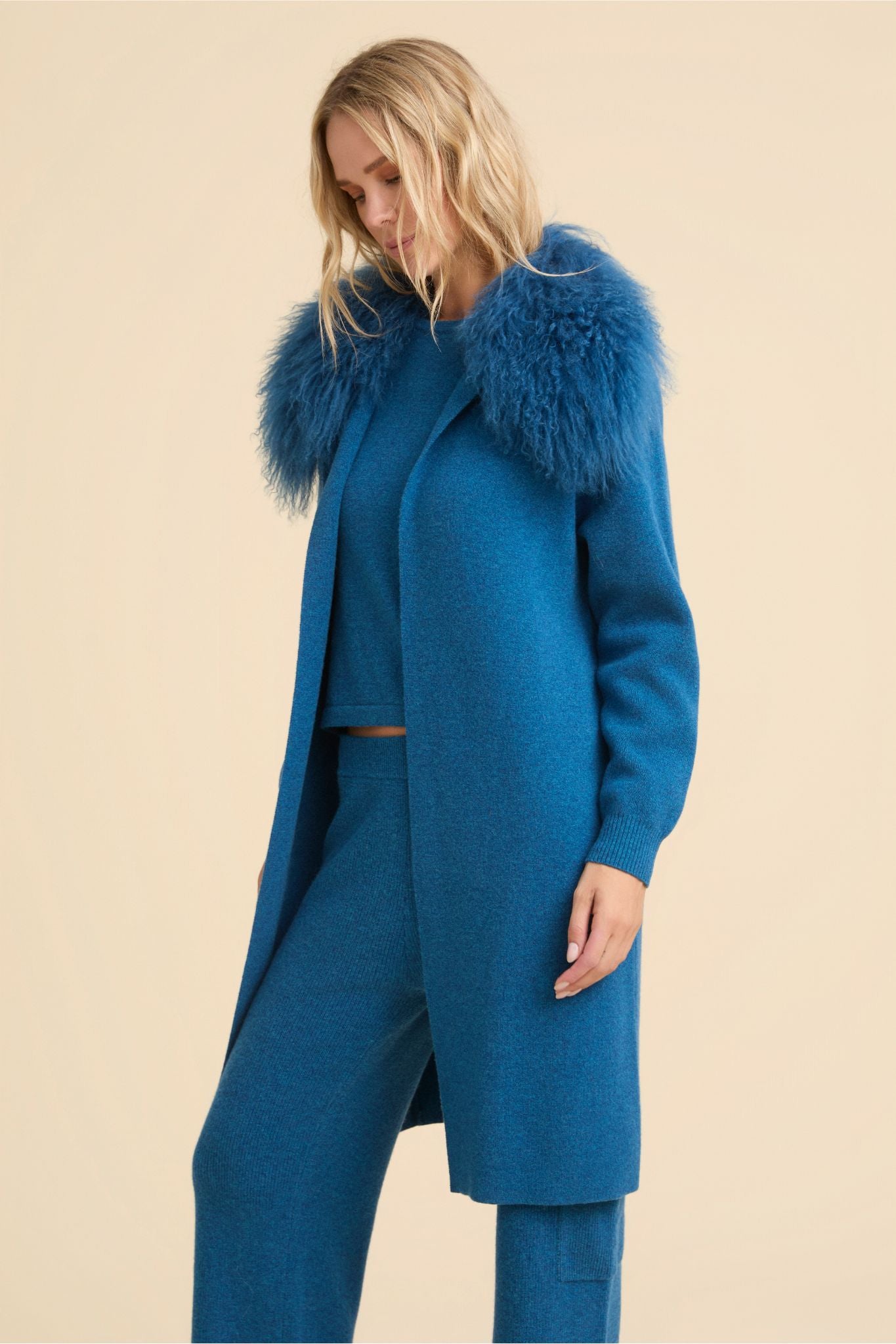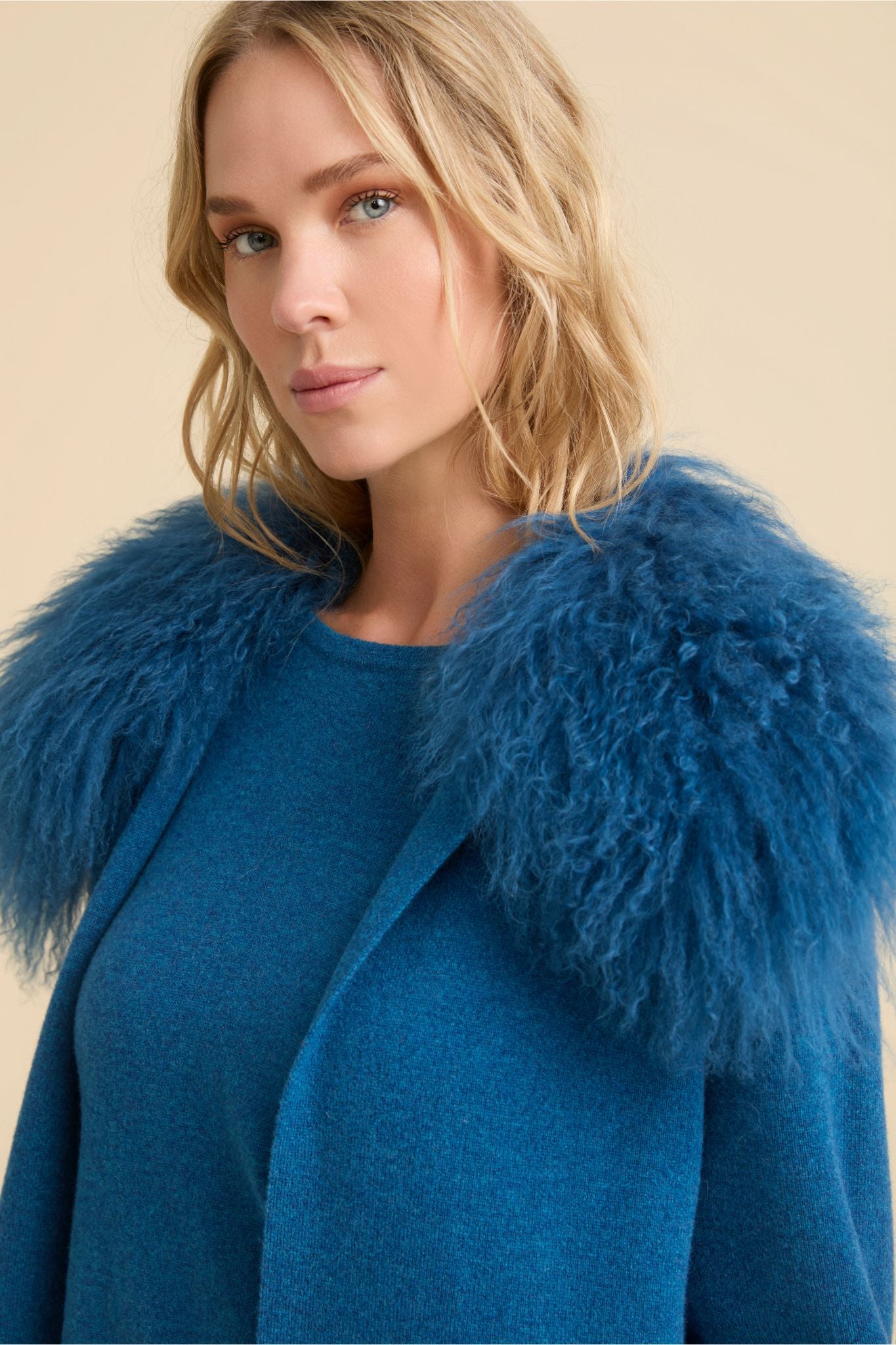 Nuestra chaqueta de punto Romina cuenta con un cuello de piel de oveja desmontable haciendo de ella que sea tan cómoda como elegante. Su color la hace muy versátil pudiendo llevarla con todo pero te recomendamos que la combines con nuestro jersey *Billy y pantalones Clay para crear un look casual y estiloso.