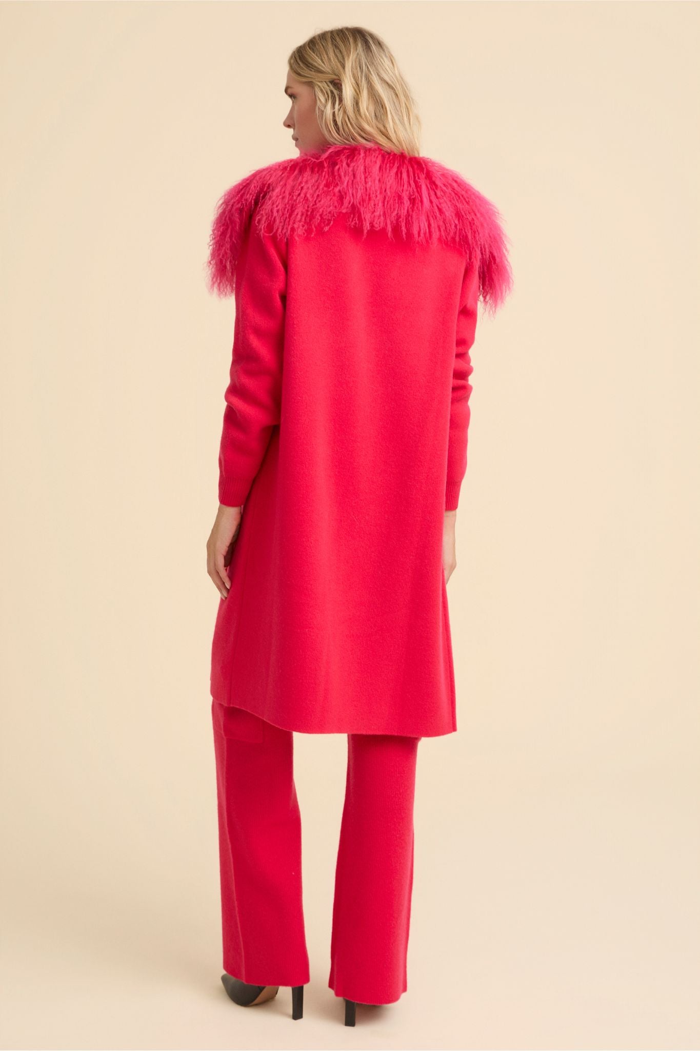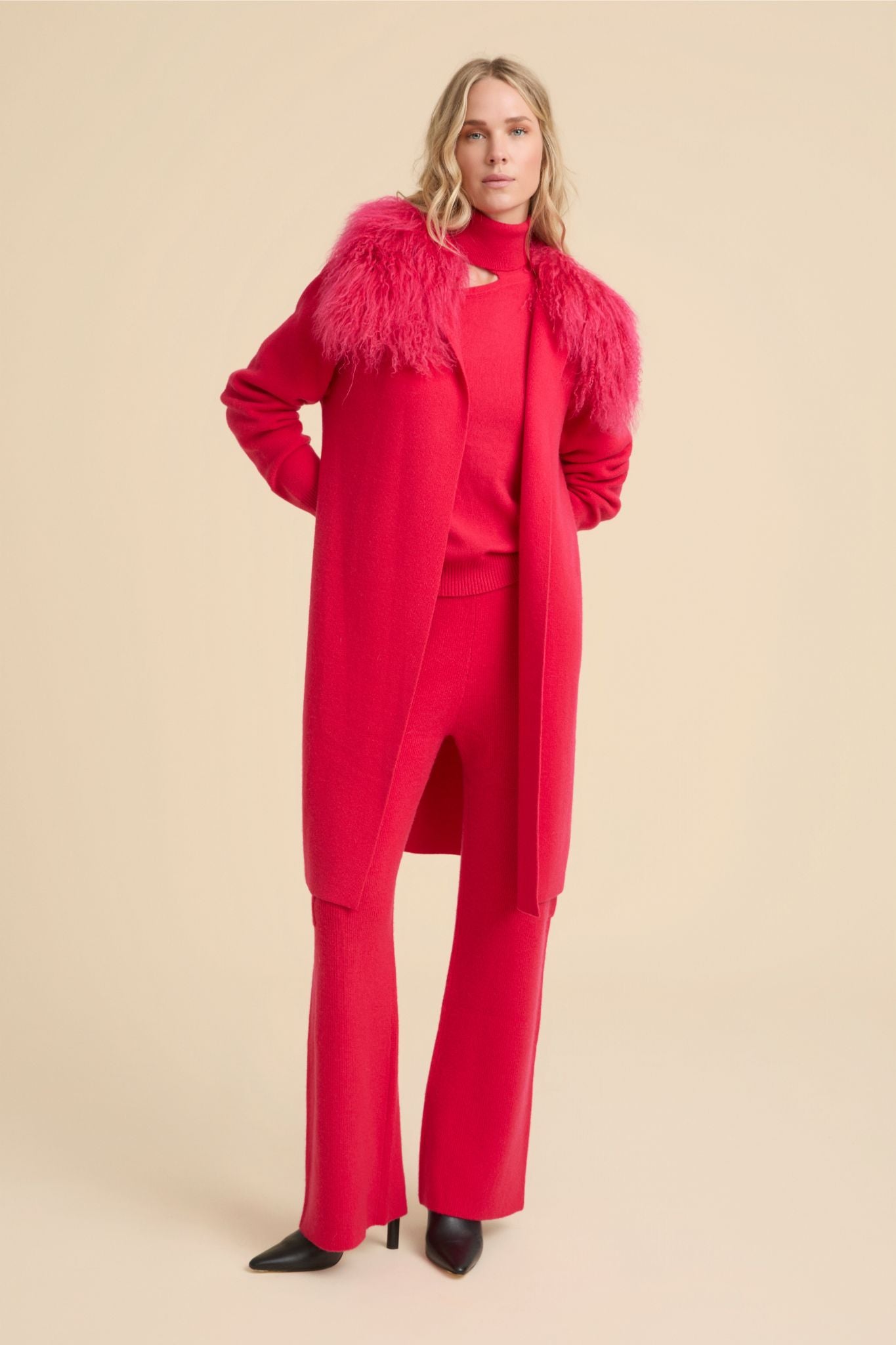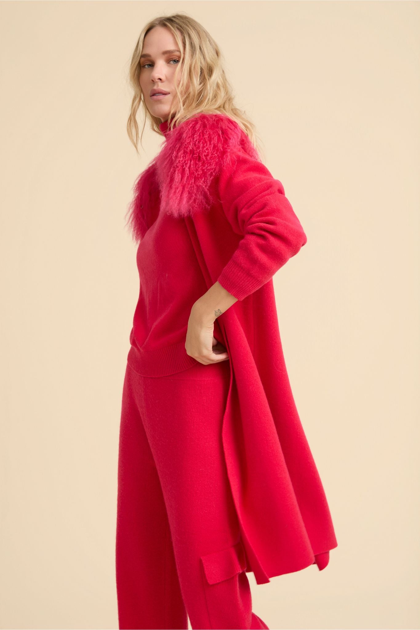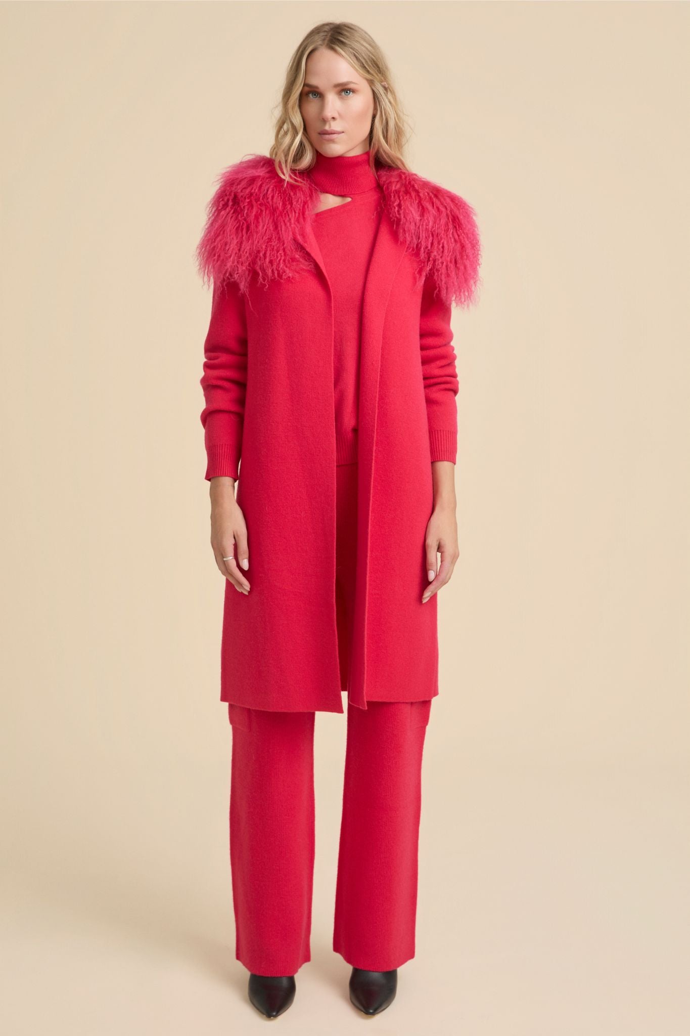 Nuestra chaqueta de punto Romina cuenta con un cuello de piel de oveja desmontable haciendo de ella que sea tan cómoda como elegante. Su color la hace muy versátil pudiendo llevarla con todo pero te recomendamos que la combines con nuestro jersey *Billy y pantalones Clay para crear un look casual y estiloso.